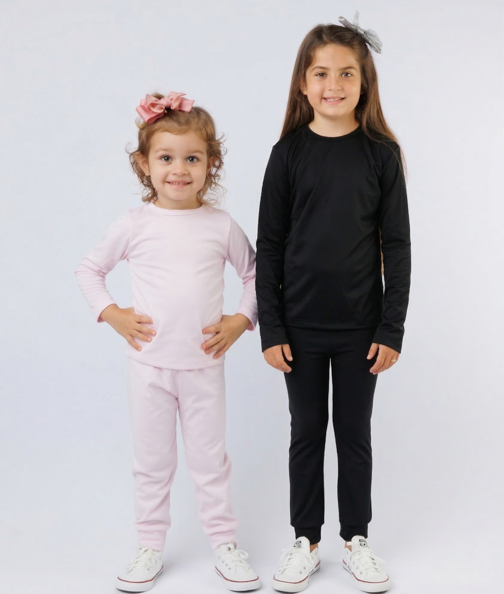 KIT DE 2 CONJUNTOS TÉRMICOS E PELUCIADOS COM BLUSA DE MANGA COMPRIDA E CALÇA INFANTIL UNISSEX 1 AO 14 - PRETO E ROSA BEBÊ